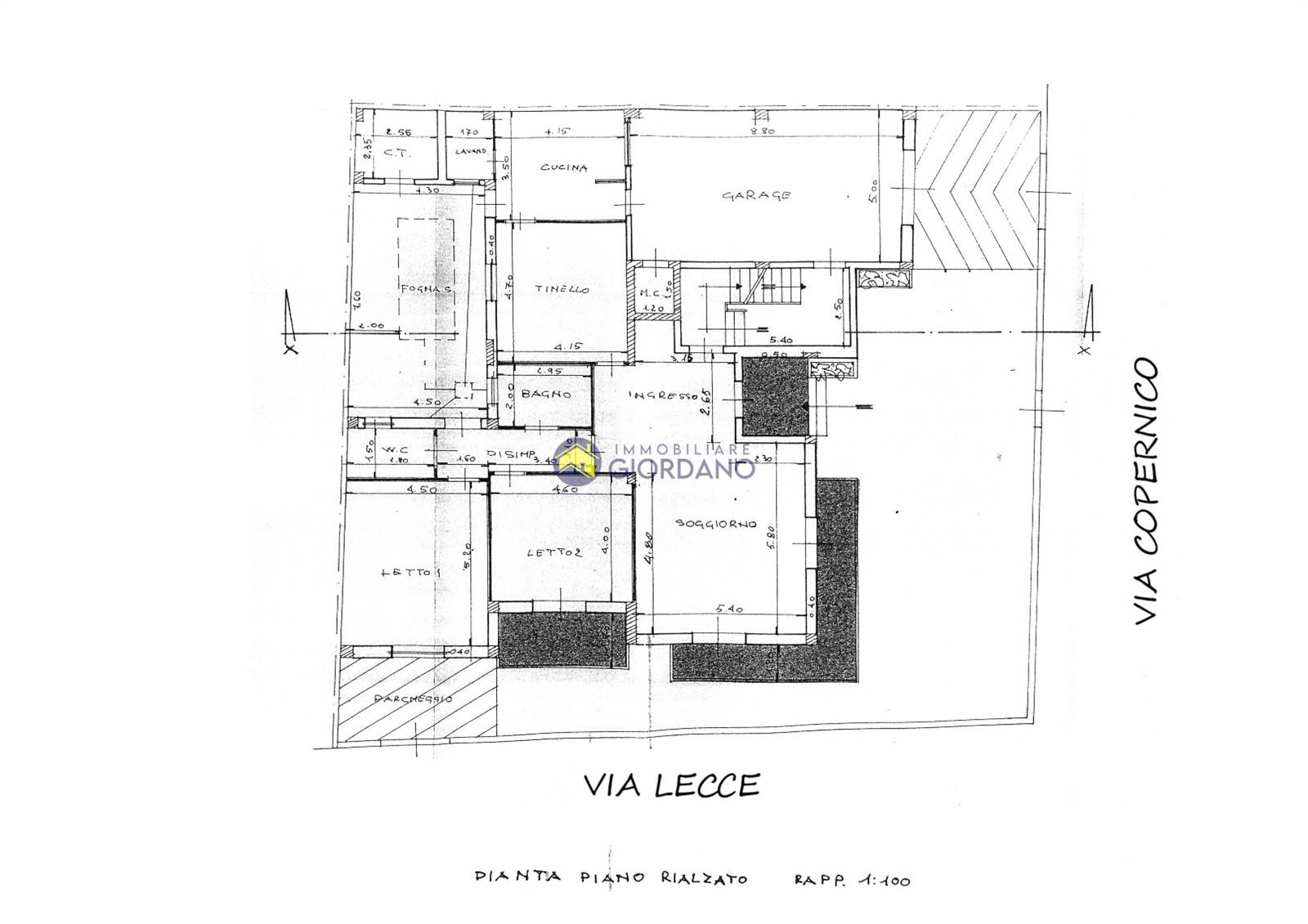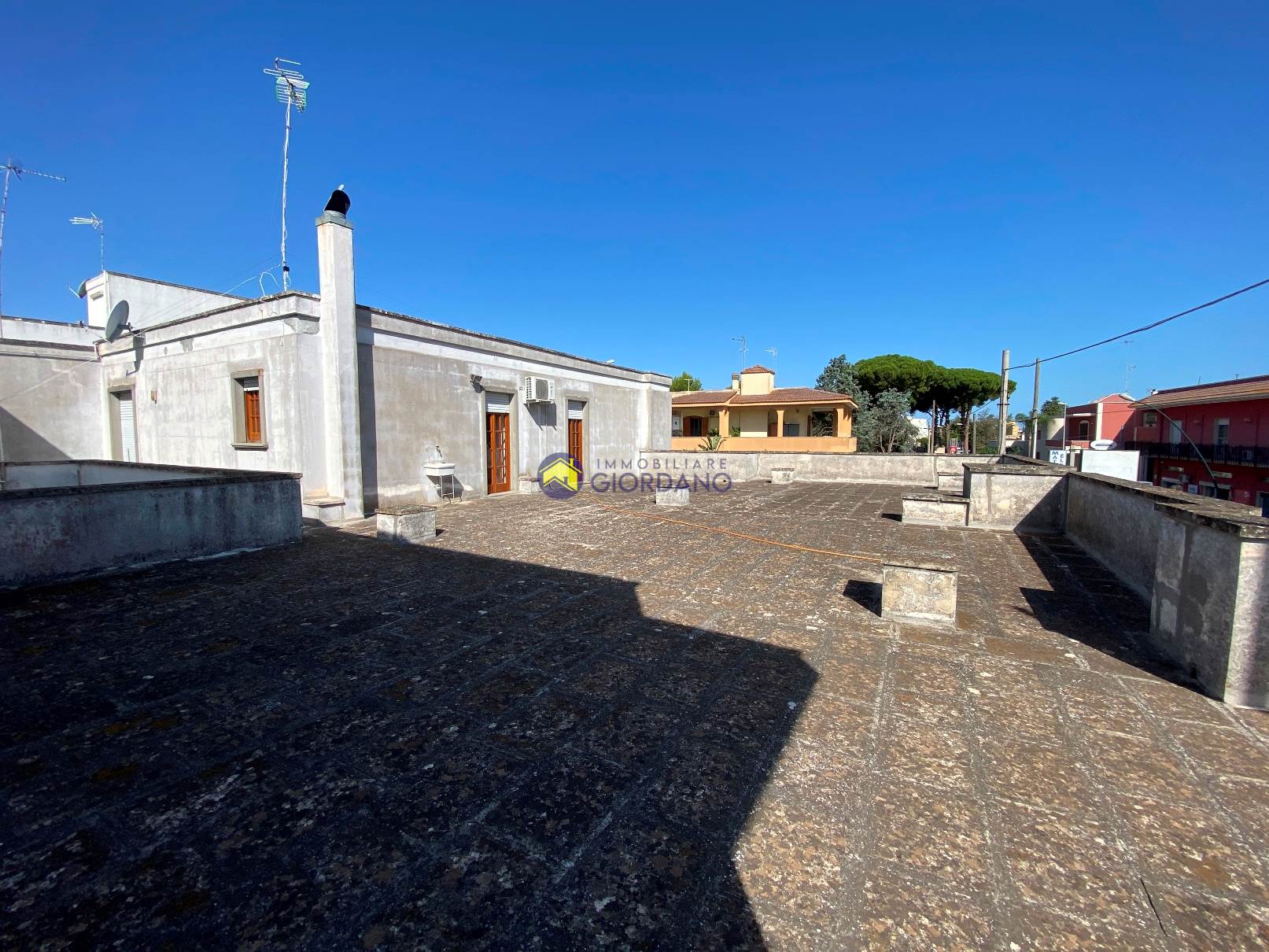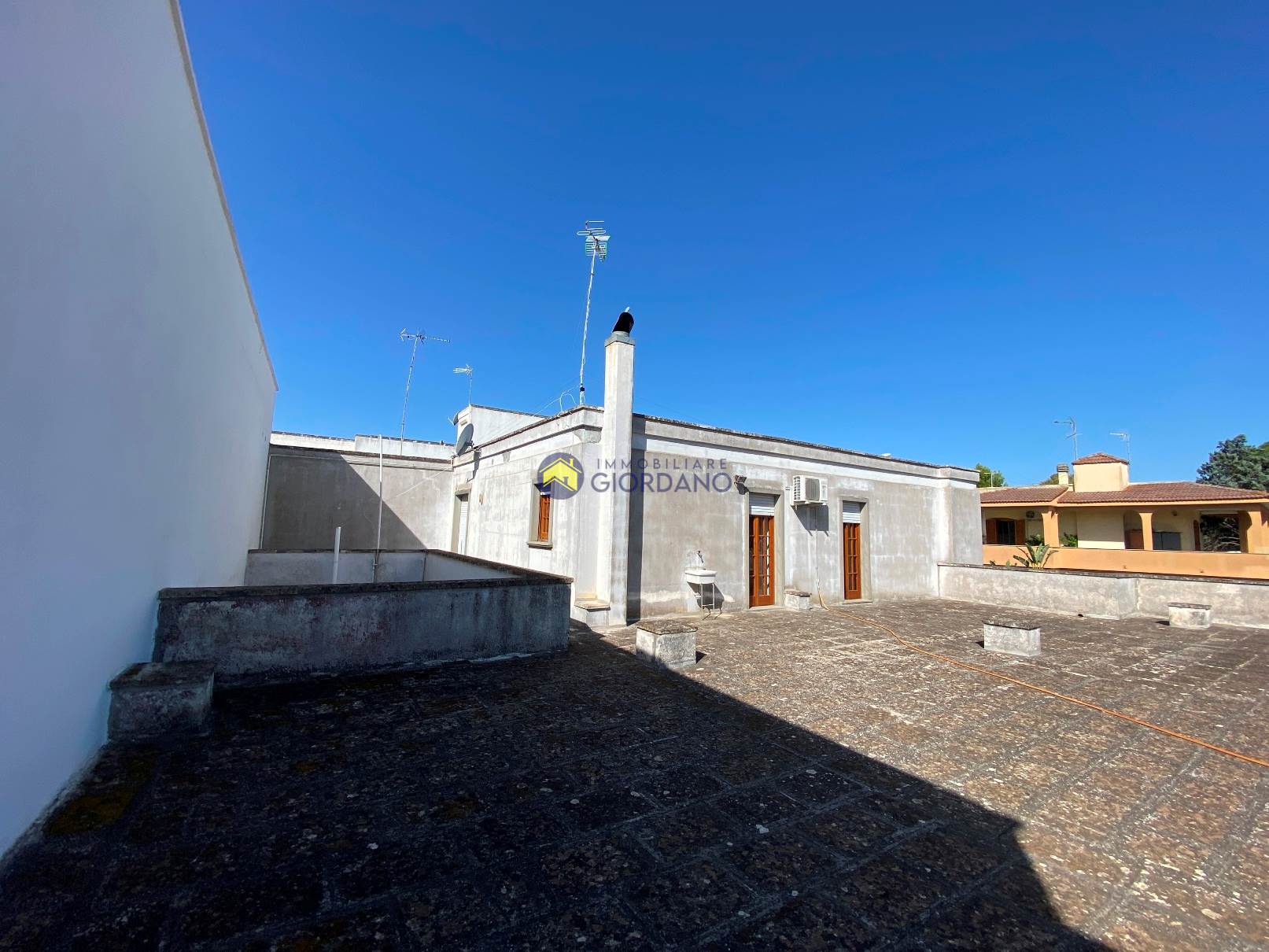 In zona servitissima, Immobiliare Giordano propone in vendita un villino abitabile composto da scoperto su due lati e scoperto interno, ampio ingresso-soggiorno, tinello, cucina, lavanderia, disimpegno, due bagni, due vani letto e garage al piano terra con vano scala che collega il piano terra, il piano primo e piano seminterrato.
